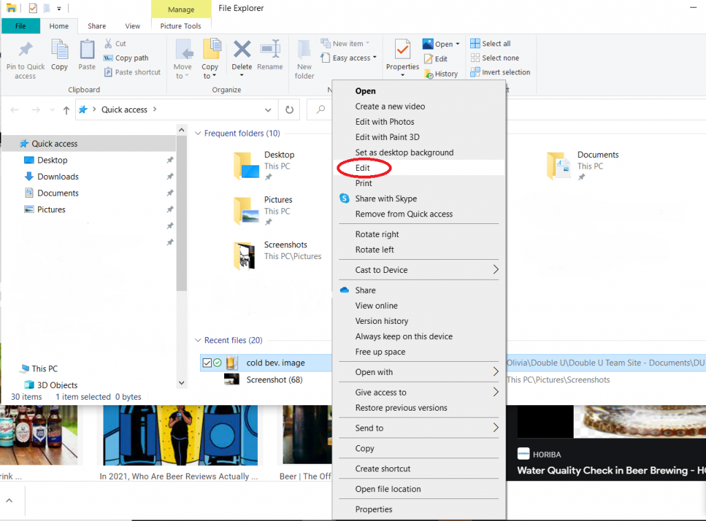 Once saved - open your files, right click your photo, and select edit.