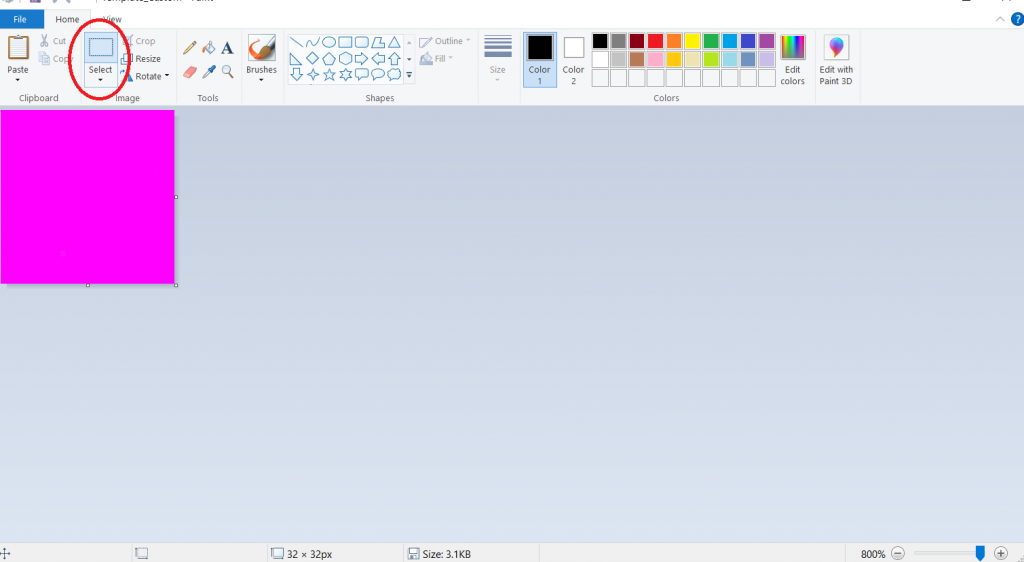 After you have copied the image, open your files and right click the file with the little purple square you saved earlier and select edit. Once it has opened, click on the select option.