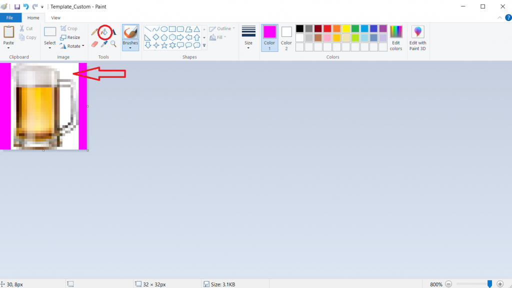 If there are still some little white spots you wish to get rid of, click on the pencil tool and manually fill in any of the white spots.