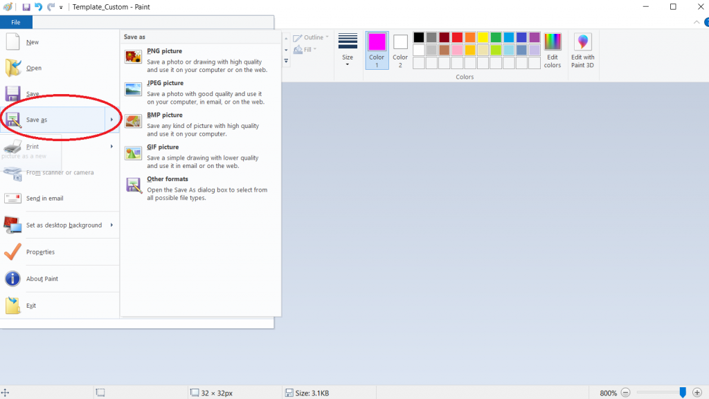 Once you are satisfied with your icon, go ahead and click File > Save As