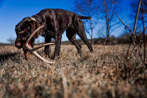 As time progresses and your dog gets use to the previous steps, start making it slightly more difficult to find the antler. Maybe toss it in some higher grass or further distances. Make your dog hunt for it.