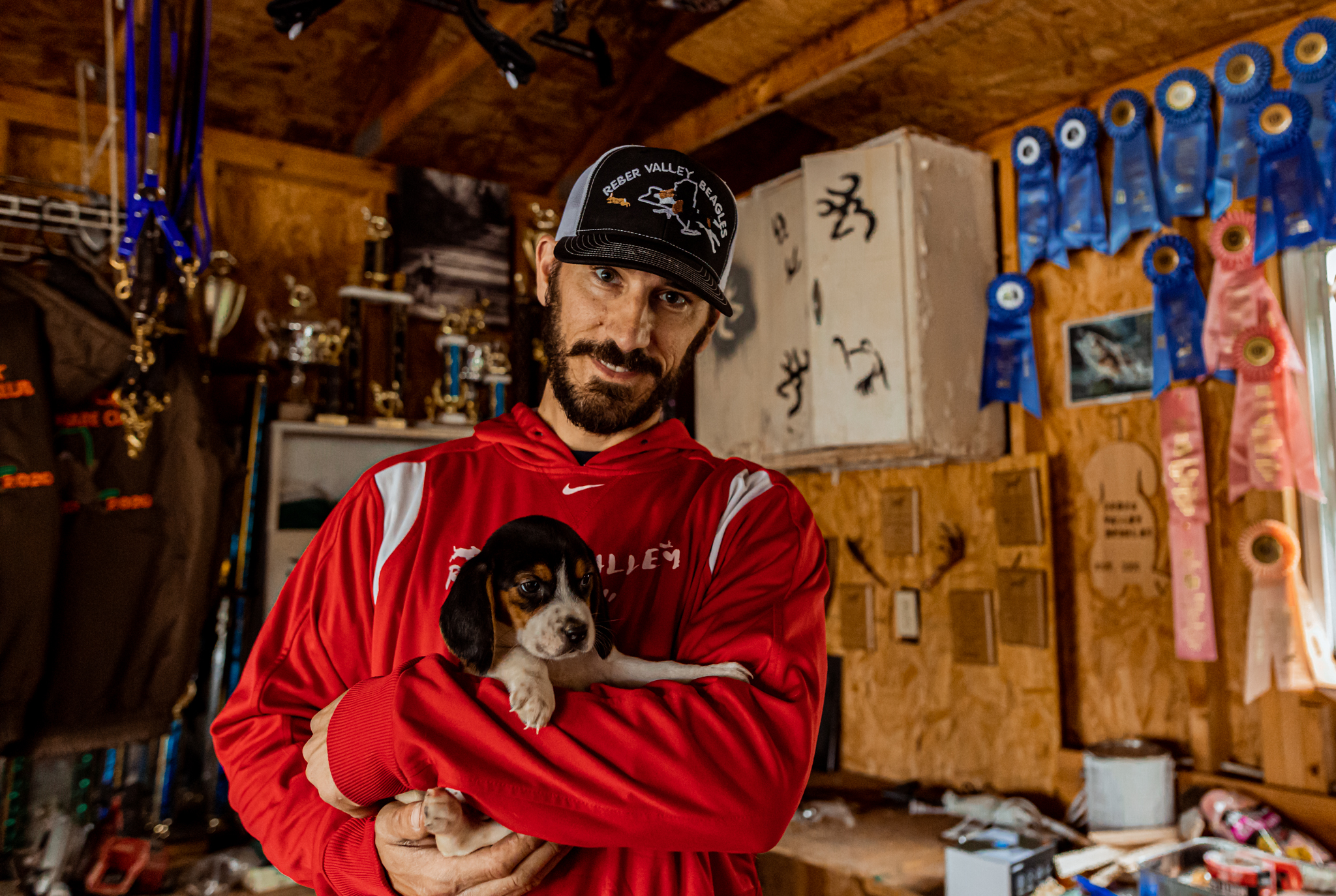 Brandon Jaquish, of Reber Valley Beagles in Willsboro, New York, has been breeding top-performing, 13-inch AKC-registered beagles since 2009. One look at the rainbow of ribbons and trophies in his garage will confirm the quality of his dogs and his knowledge of the game. Brandon regularly runs his beagles in field trials across New York and New England, although his dogs have placed all along the East Coast and beyond. He also enjoys the hunt, and you can bet you’ll find him and his pack on a hot track during the hunting season.