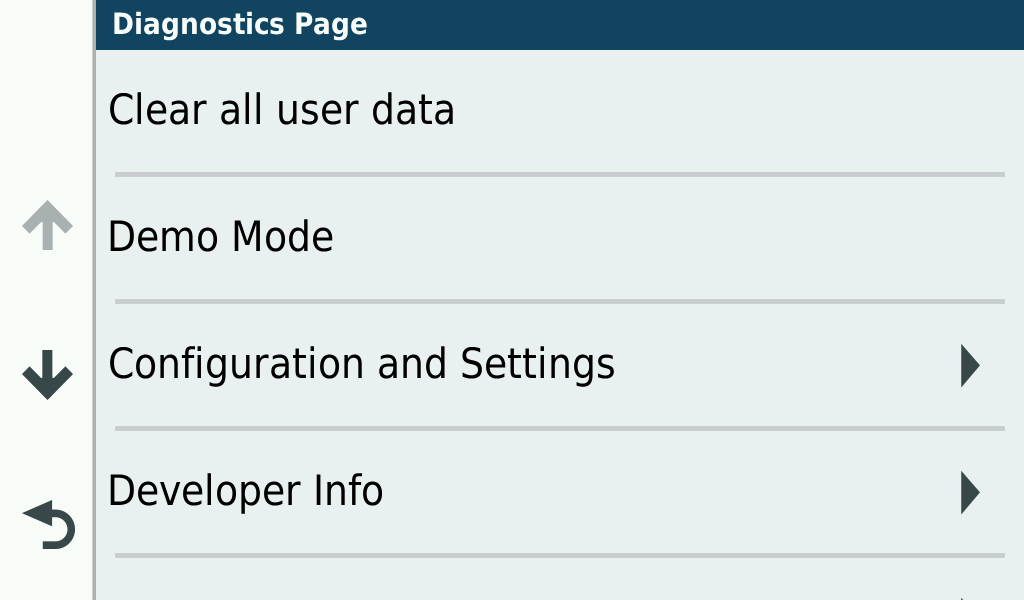 This will bring up a diagnostics page. Then tap "Clear all user data"