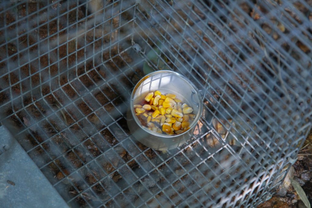 I have used all types of baits but I continue to go back to one thing more than any other and that is syrup. Plain old maple syrup on top of almost any food such as corn seems to work wonders. I typically dribble a little on the trigger plate as well. Raccoons have a major sweet tooth and love all things sweet; honey buns and marshmallows are often used as well. The main reason I stay away from those types of baits is a raccoon can reach over the trigger plate and grab them without ever setting the trap off. If I have a raccoon that is stealing bait consistently, I place the bait in a bottle or can cut in half and wired to the back of the trap. When they go to steal it as they have previous baits, they often fight to get it out and set the trap off in the process. Other baits that are commonly used such as wet cat food and sardines work well too. I have caught more non-target animals using those than with sweet baits, which is why I prefer syrup.