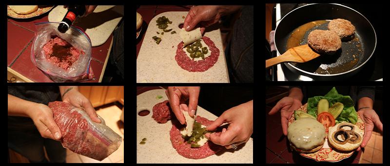 - Make thin paddy from meat, place half a slice of pepperjack cheese onto paddy, layer this with jalapenos, then place the other half of cheese on top.
