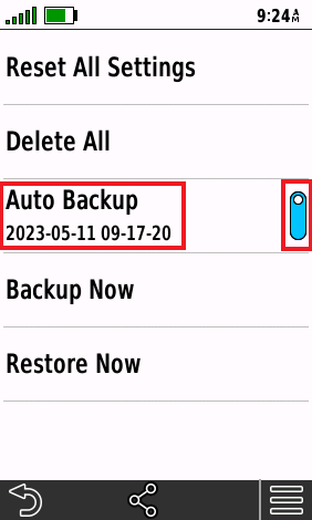 If you would like, the Auto Backup can be turned off and on manually in the Reset menu.