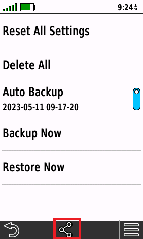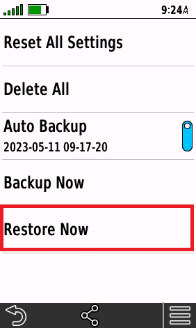 Select Restore Now, and select the backup file you'd like to load onto your handheld.