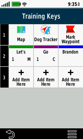 You will notice all of your keys in this page. Map, Dog Tracker, and Mark Waypoint are just three useful shortcuts to add to the top.