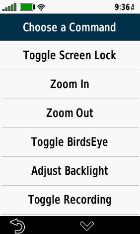 For example, you can set the buttons at the top to Zoom In, Zoom Out, and Toggle Data Broadcast. Other useful shortcuts include Toggle Screen Lock, Toggle BirdsEye Imagery, Toggle Recording, Adjust Backlight, and InReach for Alpha 200i users with an active subscription.