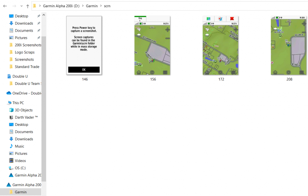 - Select your 200i unit from the menu, then open the containing folder "Garmin" and from there, the folder titled "scrn"
